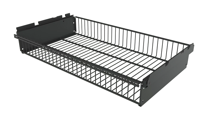 Корзина выдвижная Титан GS предназначена для установки на гардеробную систему. Изготовлена из проволоки, такой же как и сетчатые полки Титан GS. Учитывая крупноячеистую структуру, выдвижные корзины являются отличным вариантом для хранения одежды, поскольку обеспечивается отличная вентиляция вещей. Корзина выдерживает до 35 кг при ее равномерном распределении. Устанавливается на кронштейны полок Титан GS (в комплект не входят). Покрытие: порошково-полимерное, гипоаллергенное и устойчивое к механическому воздействию. Цвет: черный