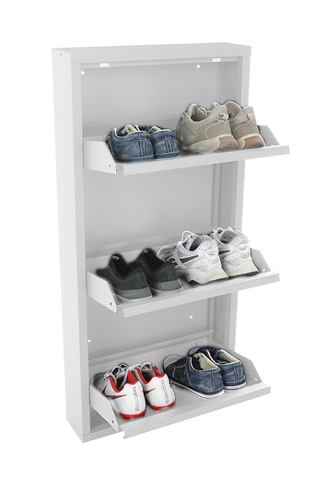 Обувница Практик ОМ-3 белая предназначена для хранения обуви. Обувница состоит из трех отделений, каждое отделение вмещает 2 пары обуви (до 43 размера). Изготовлена из стали, поставляется в собранном виде. Цвет: белая Ral 9003. Тип покрытия: порошковое