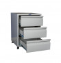 Тумба мобильная предназначена для хранения документации и канцелярских принадлежностей Комплектуется 3 выдвижными ящиками с надежным центральным замком ПРАКТИК (2000 комбинаций) и колесами, два передних снабжены стопором Нагрузка на ящик 20кг Внутренние размеры ящика, мм (ВхШхГ) 133х391х425, Цвет Серый полуматовый (RAL 7038), Тип покрытия Порошковое