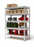 Среднегрузовой стеллаж Титан MС-Т предназначен для хранения грузов в складах, торговых и производственных помещениях. Стеллаж представляет собой сборно-разборную конструкцию. Для сборки стеллажа необходимо 4 стойки МС-Т 2500, 10 продольных балок МС-Т 151, 10 боковых балок МС-Т 50, 4 полки из фанеры толщиной 10 мм, 5 стяжек МС-Т 50. Стойки перфорированные, Г-образной формы, изготовлены из профилированной высококачественной стали. Ширина профиля стоек - 60х60 мм. Шаг перфорации стоек 50 мм. Балки крепятся к стойкам с помощью зацепов. Настилом для стеллажа Титан МС-Т служат листы высококачественной влагостойкой фанеры толщиной 10 мм. Нижняя полка секции должна находиться на расстоянии от пола не более 150 мм. Запрещается сборка нескольких секций стеллажа в единую линию. Конструкция стеллажа позволяет изменить положение полок без демонтажа всего стеллажа. Грузоподъемность на секцию стеллажа 2200 кг независимо от количества полок. Максимальная распределенная нагрузка на полку секции до 300 кг. Цвет - серый Ral 7035