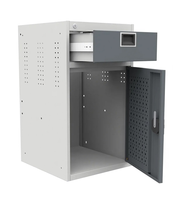 Выдерживает равномерно-распределенную нагрузку на верстак - 750 кг, на тумбу - 300 кг, на полку - 60 кг, на выдвижной ящик -30 кг, на перфорированный экран - 50 кг.