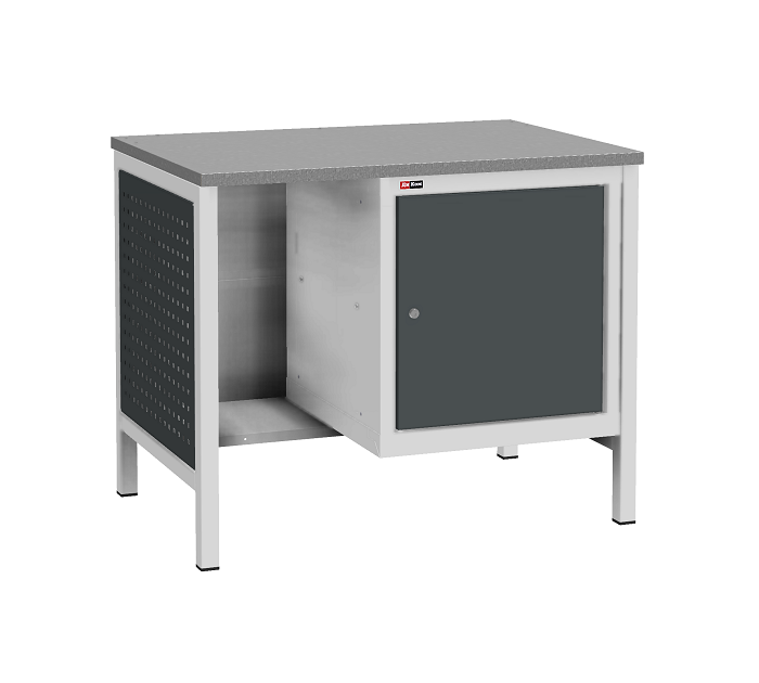 Цвет верстака: серый Ral 7038, панель облицовочная и лицевая панель ящиков/дверей антрацит Ral 7016. Тип покрытия: эпоксидная порошковая краска. Поставляется в разобранном виде